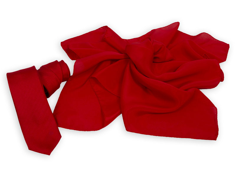 Mindestmenge Krawatten 50 Stück. Schals, Tücher oder Loop-Schals eingefärbt uni rot: jeweils 100 Stück. Tücher Design Sparkasse 12: 50 Stück.
