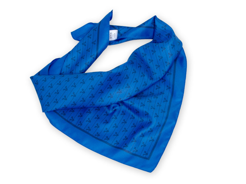 Abb. 6 zeigt das Halstuch 55×55 cm in blau in Polyester-Microfaser.