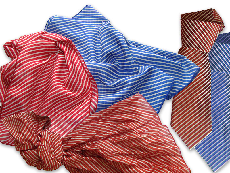 Die Krawatten, Schals und Tücher fertigen wir in jeder gewünschten Farbe nach Pantone, RAL oder HKS – exakt passend zu Ihrer Corporate Identity.