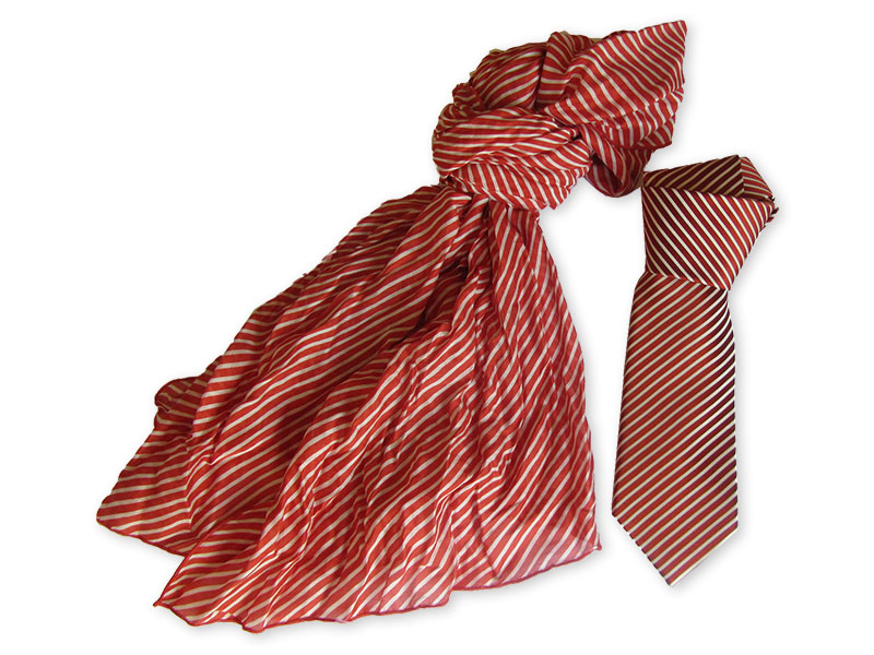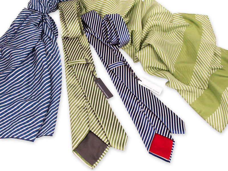 Natürlich können die Krawatten, Schals und Tücher auch mit einem Firmenlogo personalisiert werden.