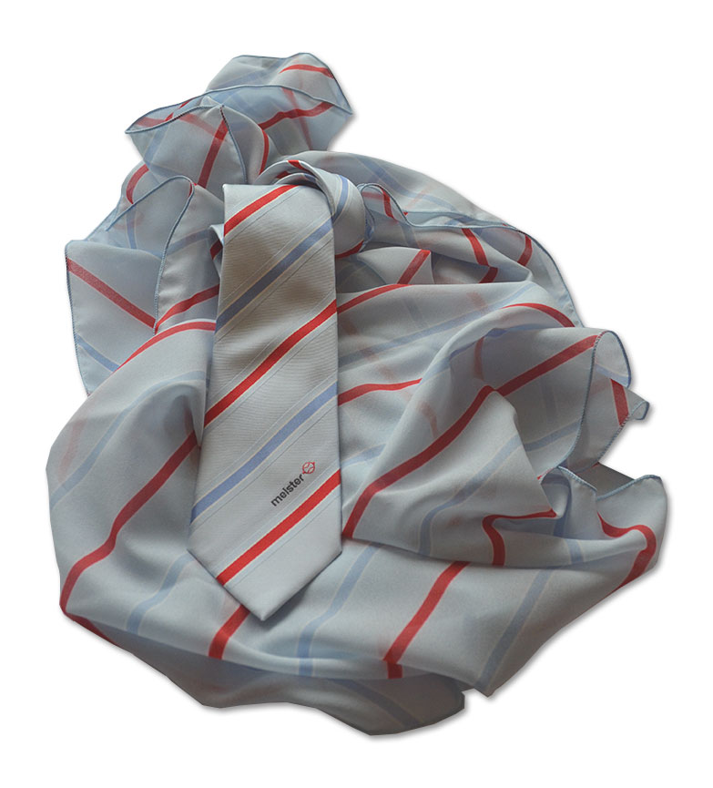 Die Krawatte fertigen wir in jeder gewünschten Farbe nach Pantone, RAL oder HKS – exakt passend zu Ihrer Corporate Identity.