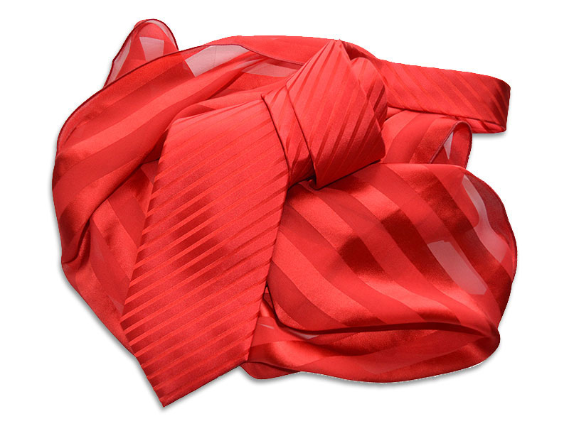 Charakteristisch sind der feine Glanz im Satin-Streifen neben der Transparenz des Chiffon-Streifens.