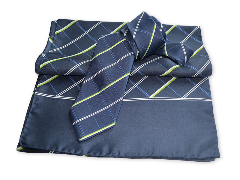 Seidenkrawatte STOCKHOLM webgemustert mit passend bedrucktem Schal 33×160 cm oder Tuch 55×55 cm